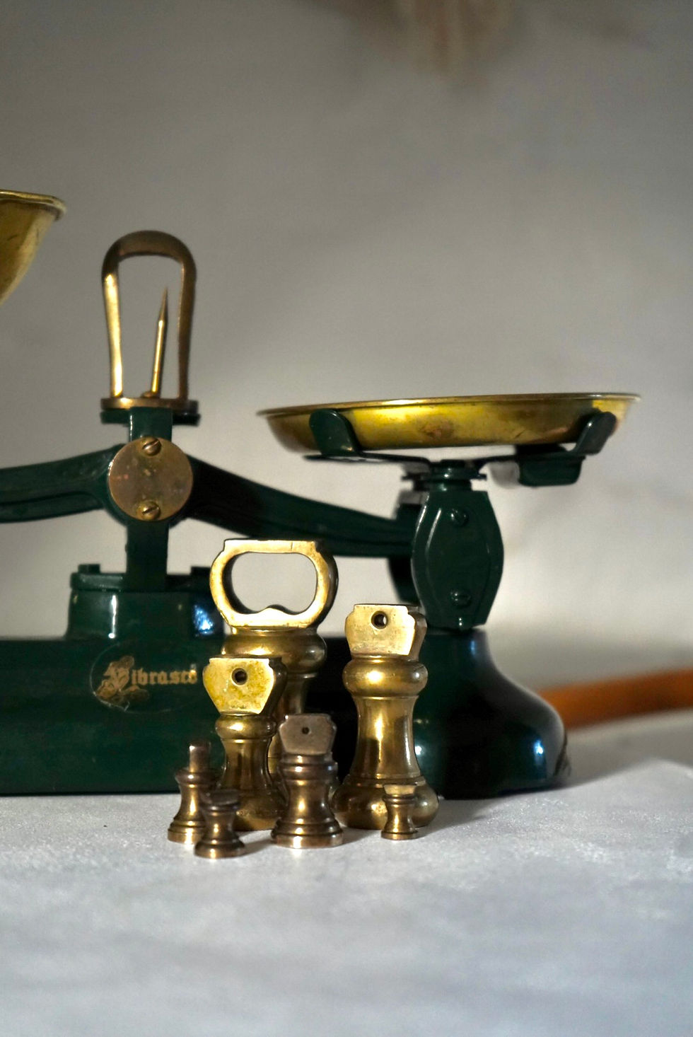 Vintage Vibrasco Cast Iron & Brass Balance Scale – Complete Set