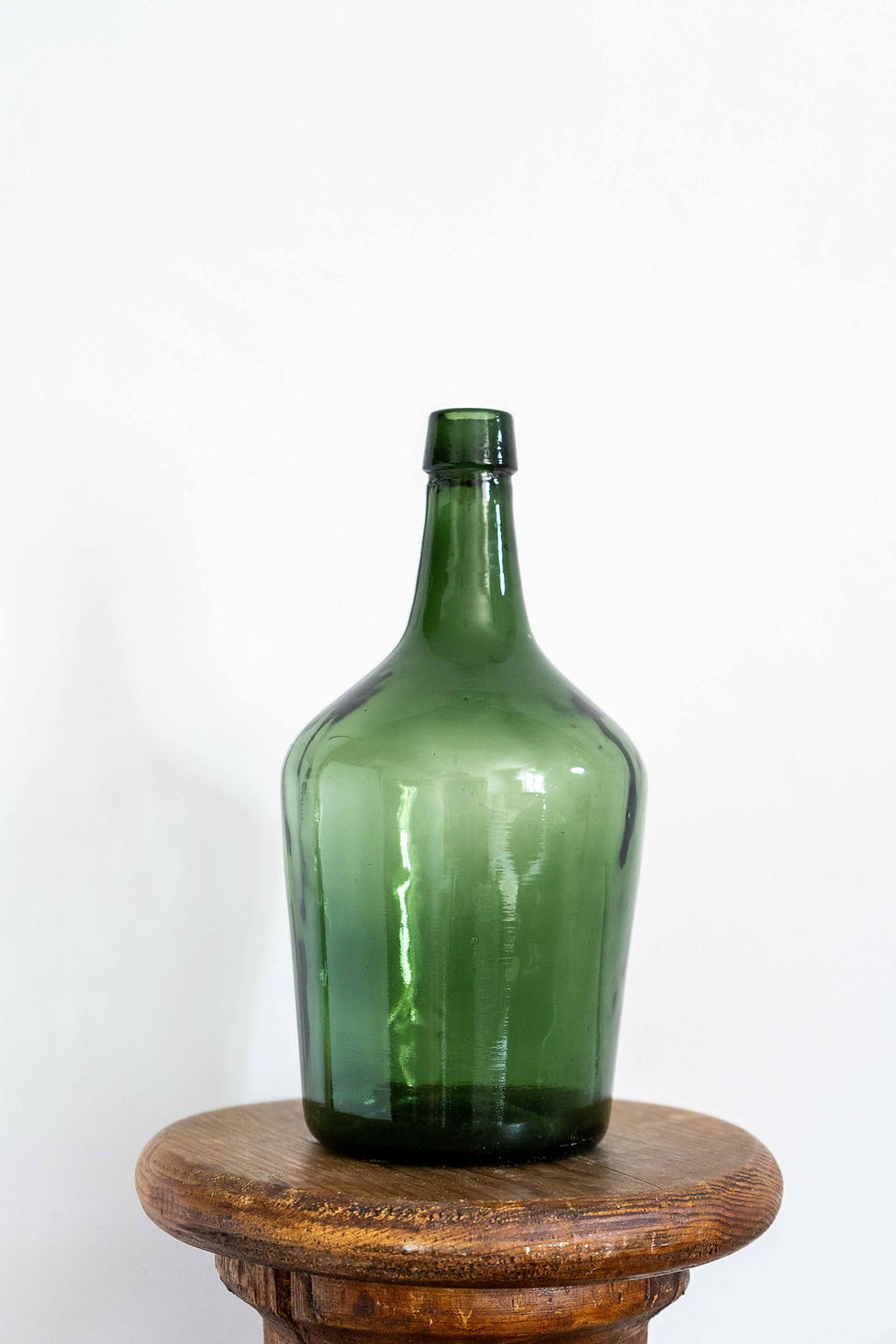 Antique Hand-Blown Demijohn in Original Woven Basket