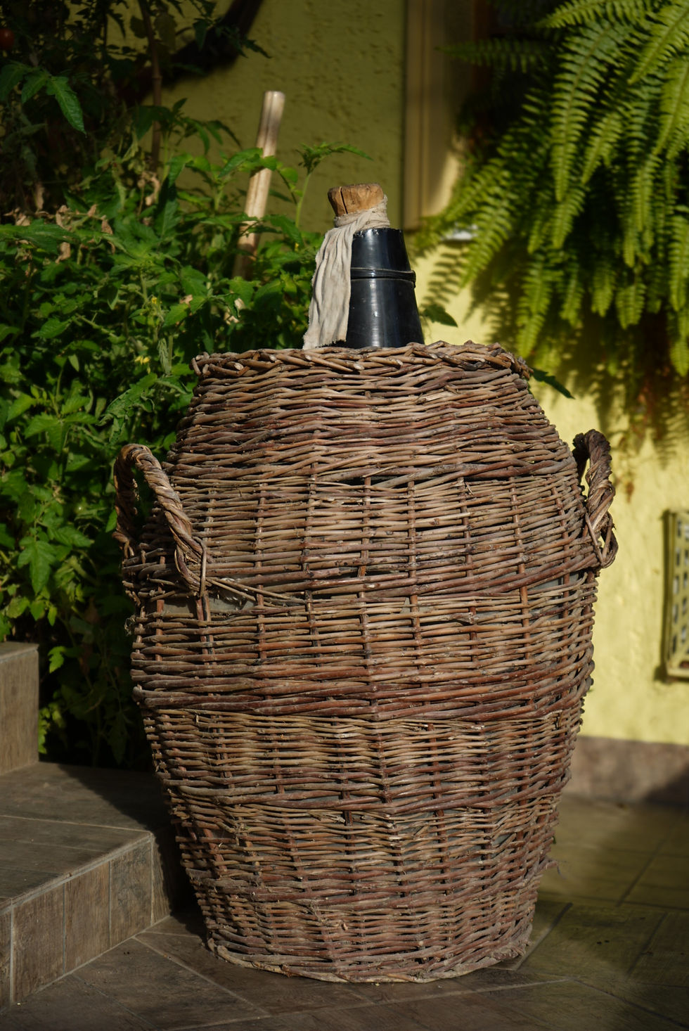 Antique Hand-Blown Demijohn in Original Woven Basket
